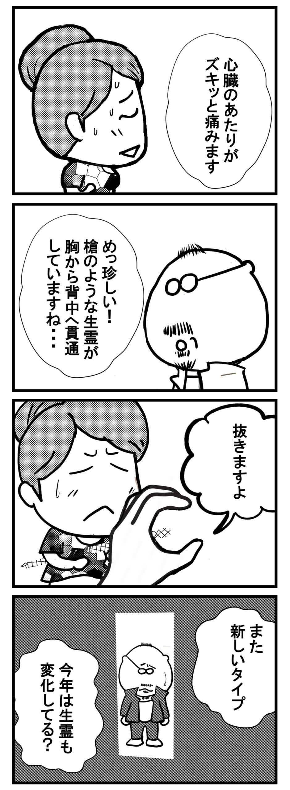 竜胆2026.01.17新しいなぁと思う生霊のかたち ポスト シェア はてブ 送る Pocket その人の胸から背中に抜けている生き霊を見た時 「これは何が起きてる?」と首を傾げました。 私の常識では「張り付く」「刺さる」が生き霊の スタイルであって身体を「貫通」するものなんて・・・ 「そんなのデタラメやないか!」と感じました。 しかも激痛を伴うなんて「許せん」と思ったものです。