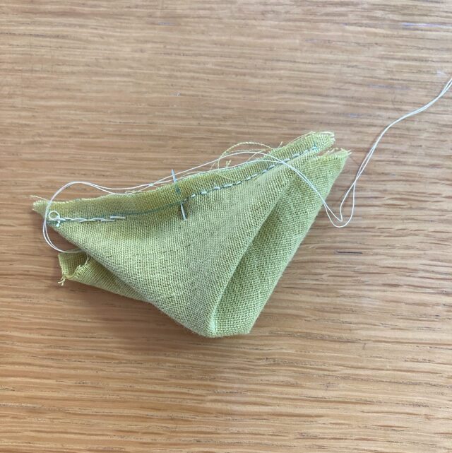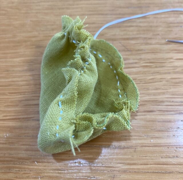 8、あたまと同様に縫い代5ミリ、一本どりでぐるりとぐし縫いします。
