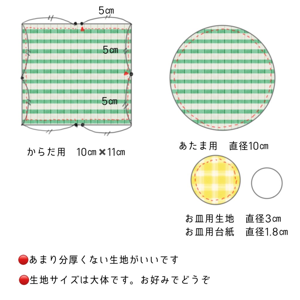 生地は河童ちゃんらしく、緑系の色の生地で作ってますが、どんな色の生地でも楽しいのではないかなと思います。