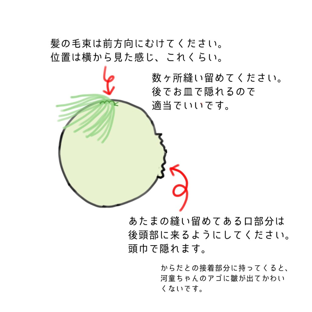 髪の毛の感じはお好みでどうぞ。縫い付けてから散髪してあげてください。