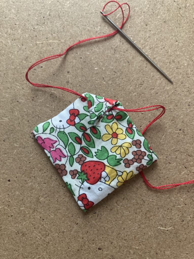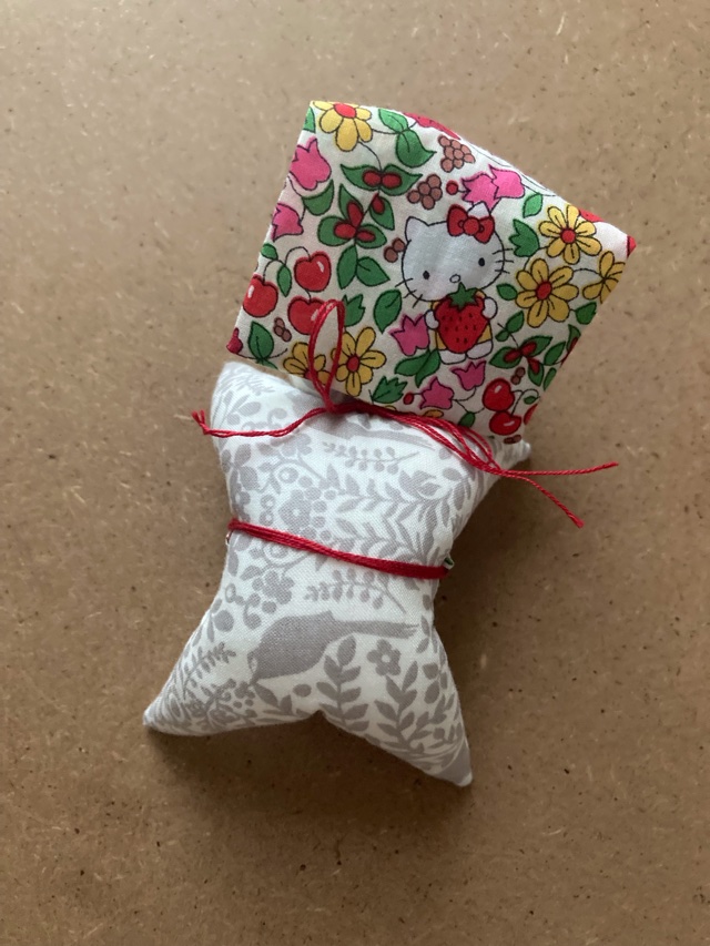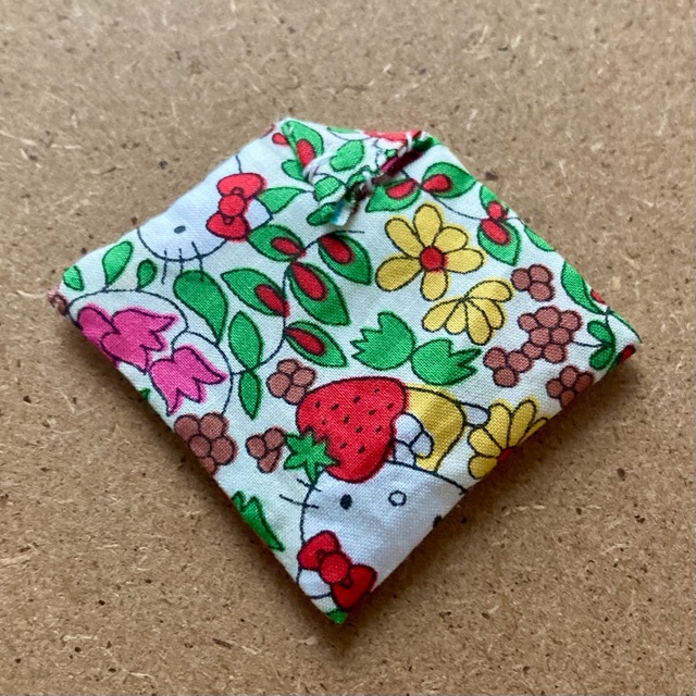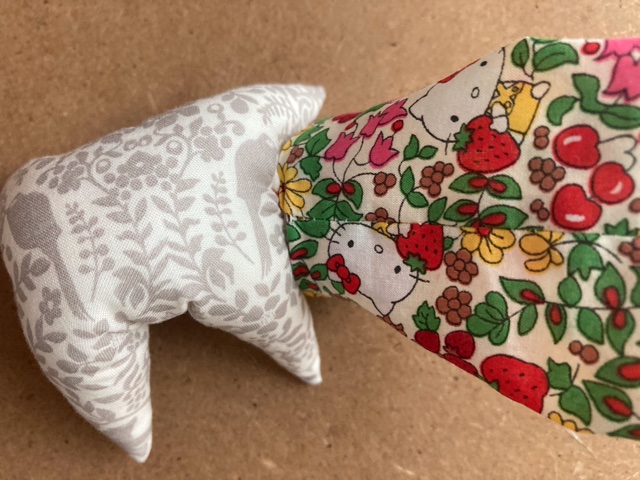 リバティキティちゃんのかわいい端切れがあったのでこれで作ります。