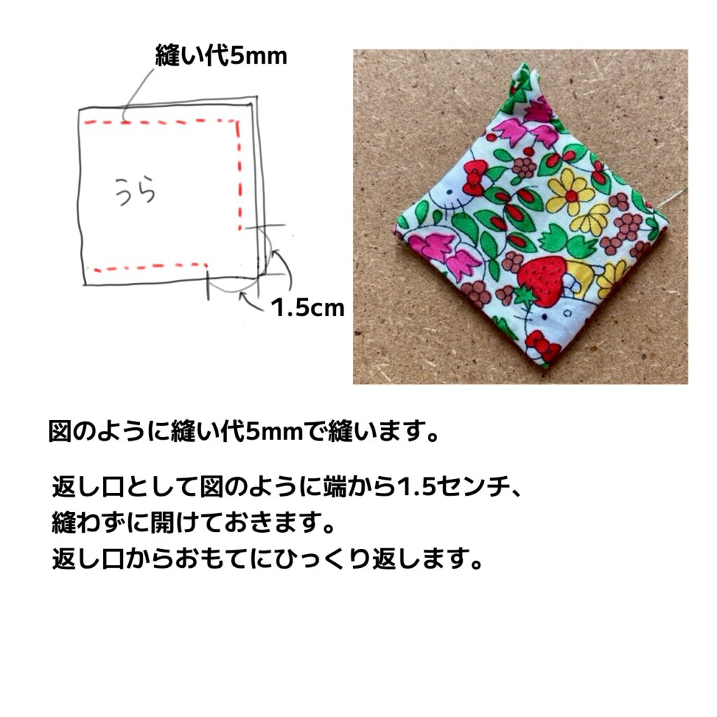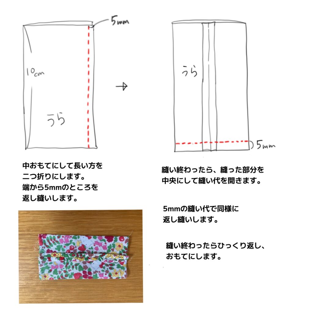 上の図のように頭巾と同じ生地で4.5✖️9cmの生地を用意します。