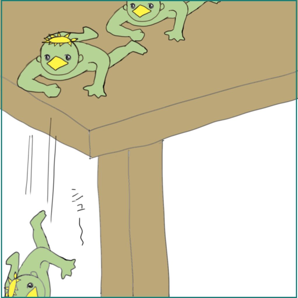 そしてテーブルから次々と落ちていく。。