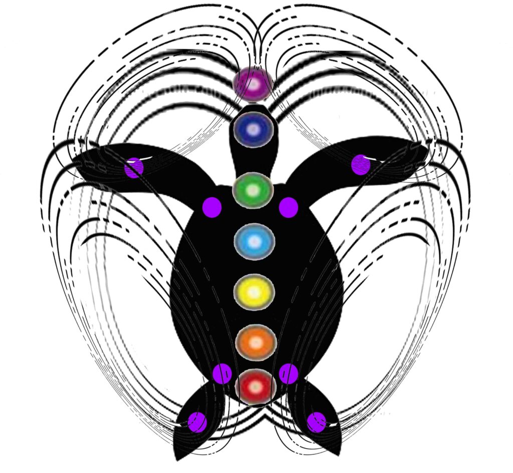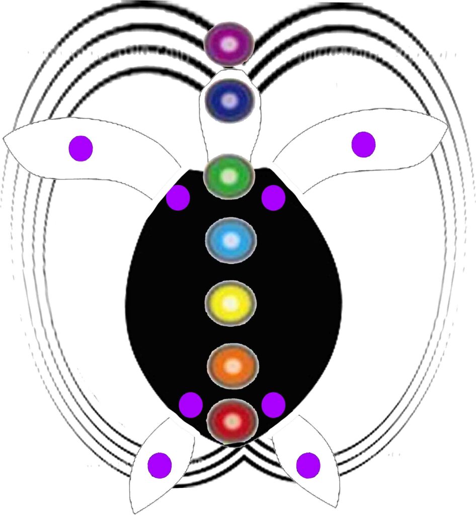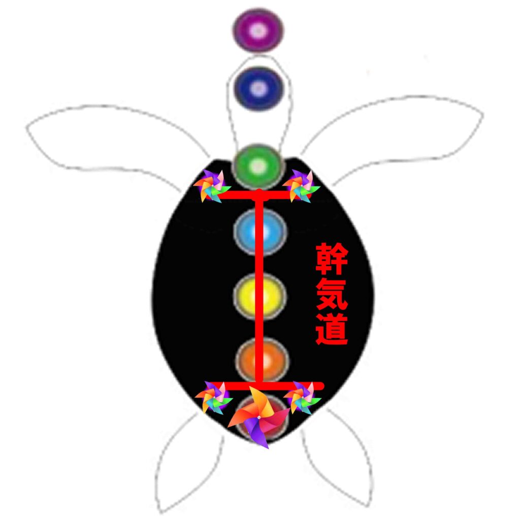 亀の体の中芯である第1~第5の華車(チャクラ)と両腕と大腿の付け根にある風車(チャクラ)を旋回させます。